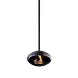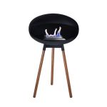 Neben diesem stehenden Modell mit schwarzem Untergestell bieten wir den Kamin auch mit einem Holzuntergestell oder als Hängemodell an.